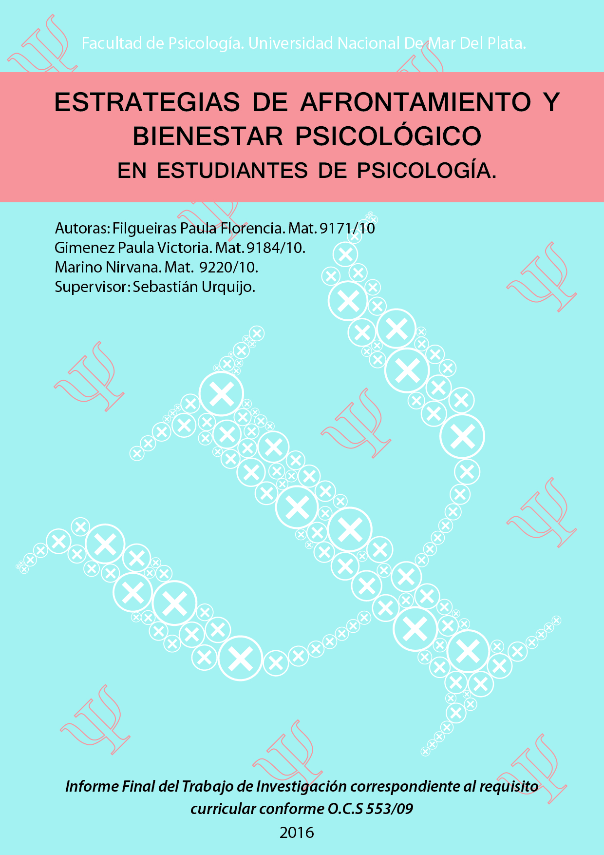 El objetivo de esta investigación es establecer relaciones entre la frecuencia de uso y el tipo de estrategias de afrontamiento con los niveles de bienestar psicológico en estudiantes universitarios. Se parte del supuesto que utilizar con mayor frecuencia estrategias de afrontamiento activas y orientadas a la resolución de problemas permitirá un nivel elevado de bienestar psicológico del estudiante. Para ello se trabajará con una muestra no probabilística de estudiantes regulares de la facultad de Psicología de la Universidad Nacional de Mar del Plata.